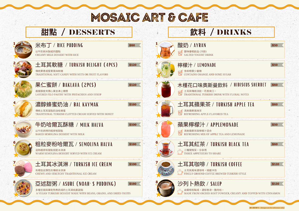 Mosaic Art & Cafe Menu